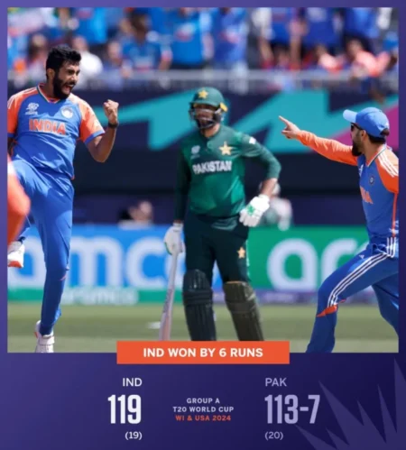 India secured a 6-run victory over Pakistan in the ICC Men’s T20 World Cup 2024 Group A match. Batting first,…