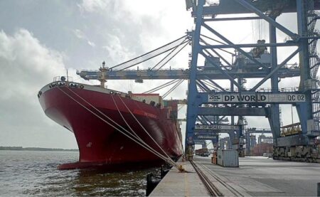 Three ships namely, Atlantic Ibis, Maersk Kinloss and Serenity carrying Containers and LPG, berthed at Qasim International Container Terminaland Engro…