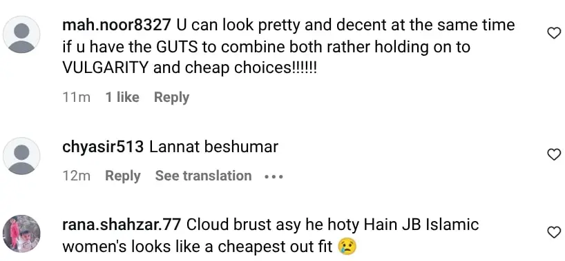 As soon as the pictures surfaced, critics flooded the comment sections. Many argued that her wardrobe did not reflect Pakistani cultural and religious values. One user remarked, “This kind of dressing won’t help them get respect.” Another stated, “She should uphold her culture and religion instead of ignoring it.”