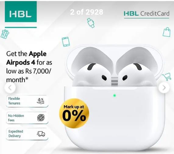 Islamabad, July 4, 2025: Upgrade your audio game with HBL! HBL CreditCard holders can now enjoy the all-new Apple AirPods 4 for just Rs. 7,000 per month—absolutely interest-free—with HBL’s Shop Now Pay Later program.