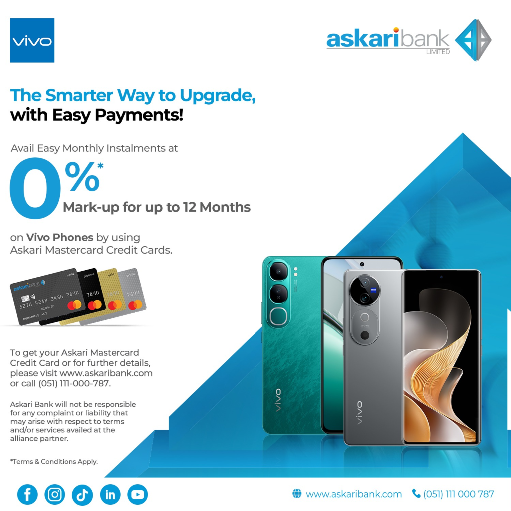Islamabad, July 17, 2025: Askari Bank has teamed up with Vivo to make smartphone upgrades more affordable than ever. Customers can now purchase the latest Vivo smartphones through 0% markup installment plans spread over 12 months, exclusively using Askari Mastercard Credit Cards.