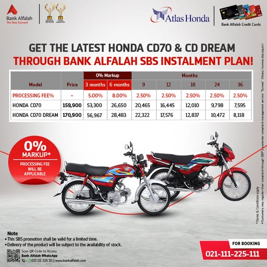 Islamabad, Aug 14, 2025: Bank Alfalah has launched an instalment plan for the latest Honda CD70 and Honda CD70 Dream, making it easier for people to buy their favourite bikes.