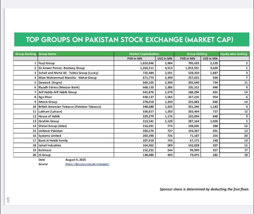 The list of Pakistan’s Richest Tycoons and groups has been released, showcasing the country’s top corporate giants dominating the stock market.