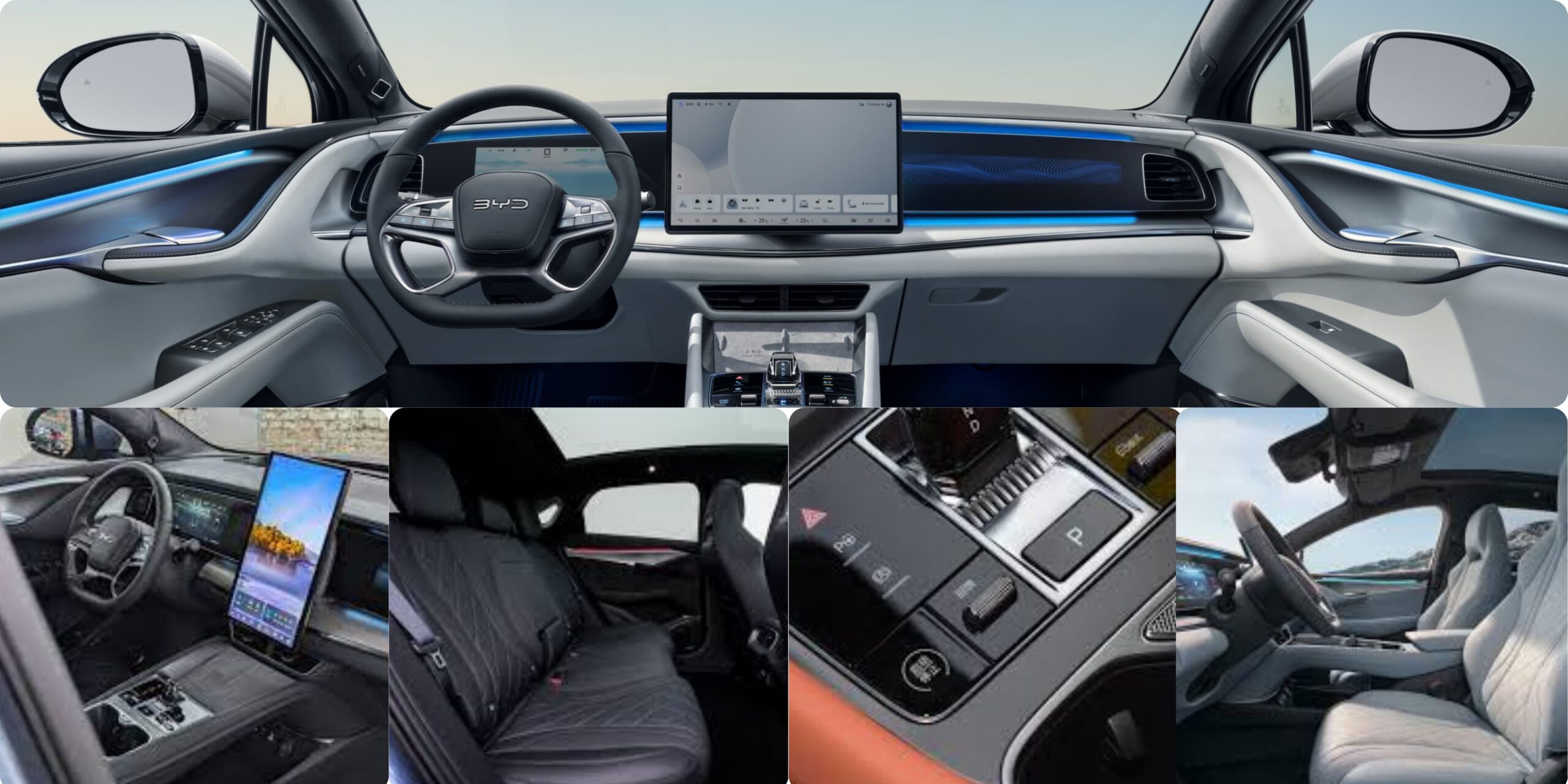 - Ambient Lighting: Multi-color LED lighting enhances the cabin’s luxury feel.