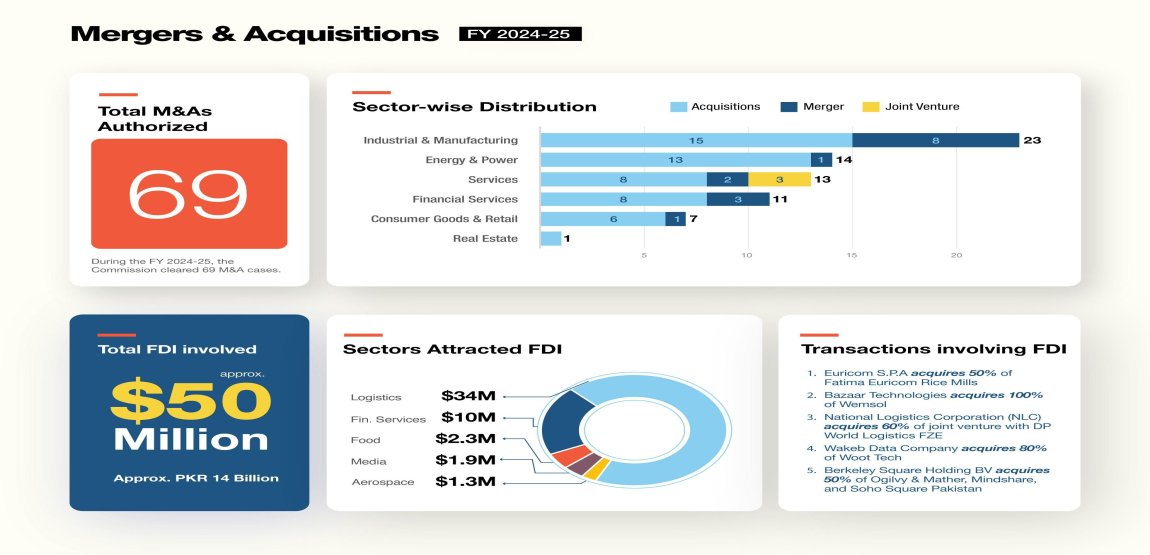 These transactions spanned diverse sectors including food, finance, logistics, aerospace, media, and e-commerce, underscoring CCP’s critical role in promoting fair competition and enhancing investor confidence in Pakistan’s economy.