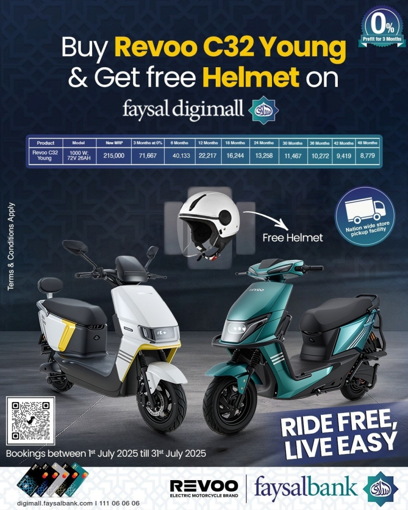 To sweeten the deal, Faysal Bank is also offering a free helmet with the purchase of select REVOO models, C32 Young. It is a smart move, combining safety with savings.