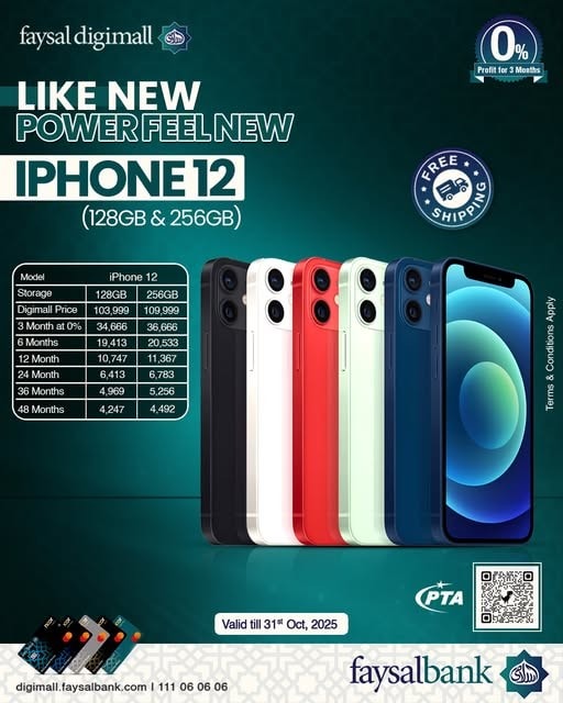 Faysal Digimall has launched an exciting offer on the iPhone 12 allowing customers to own the latest Apple smartphones on easy installments with 0% profit for three months.