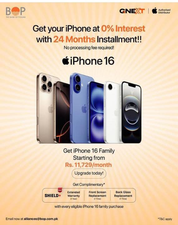 GNEXT, the trusted Apple Authorized Distributor, has teamed up with The Bank of Punjab (BOP) to bring an exclusive and budget-friendly offer for the highly anticipated iPhone 16 Family.