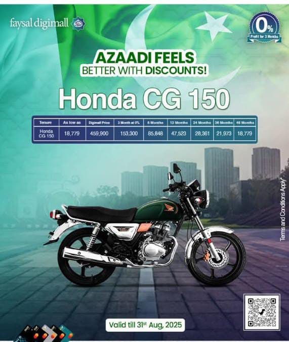 Read More: Faysal Digimall Azadi Deal 2025 – Get Honda Bikes at 0% Profit for 3 Months
