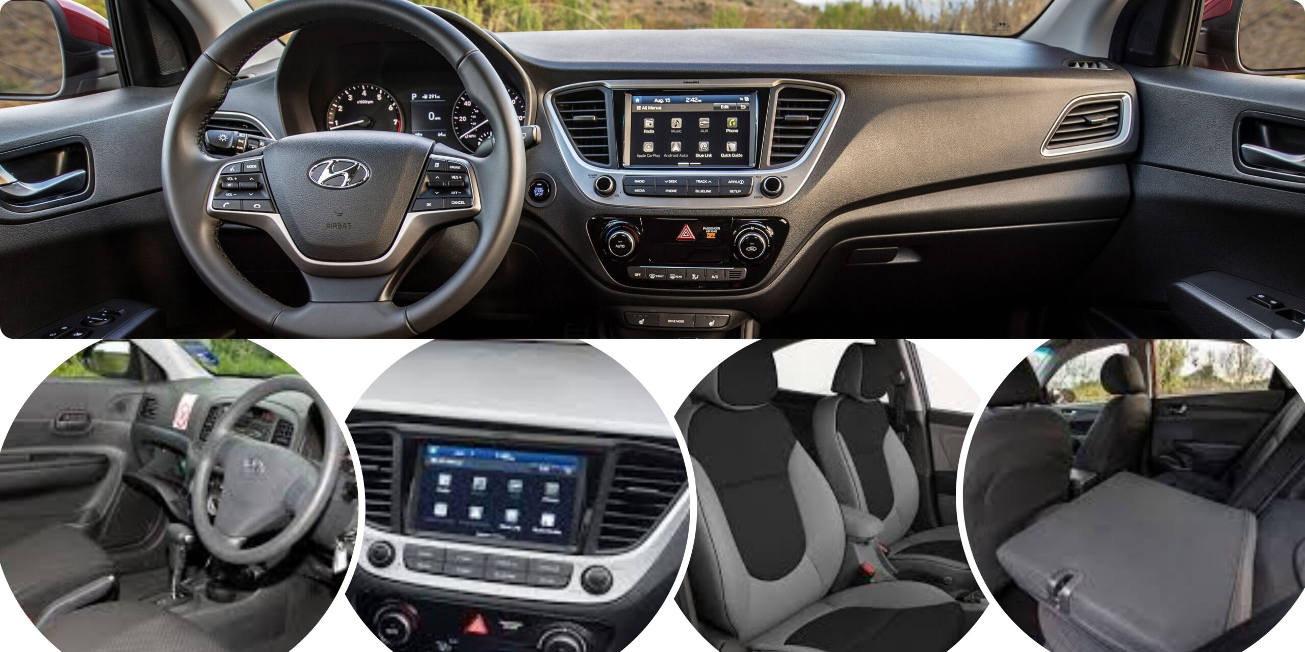 The Hyundai Accent is equipped with a 1.6L inline-4 engine, generating 120 hp and 153 Nm of torque. The car offers a choice between a 6-speed automatic transmission and a CVT, ensuring smooth and responsive acceleration.