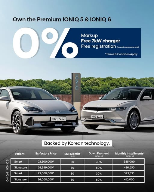 According to the company, buyers can now own these flagship EVs with zero percent markup on easy installments, a free 7kW home charger and free registration on cash payments. The offer highlights Hyundai commitment to promoting eco-friendly mobility in the country.