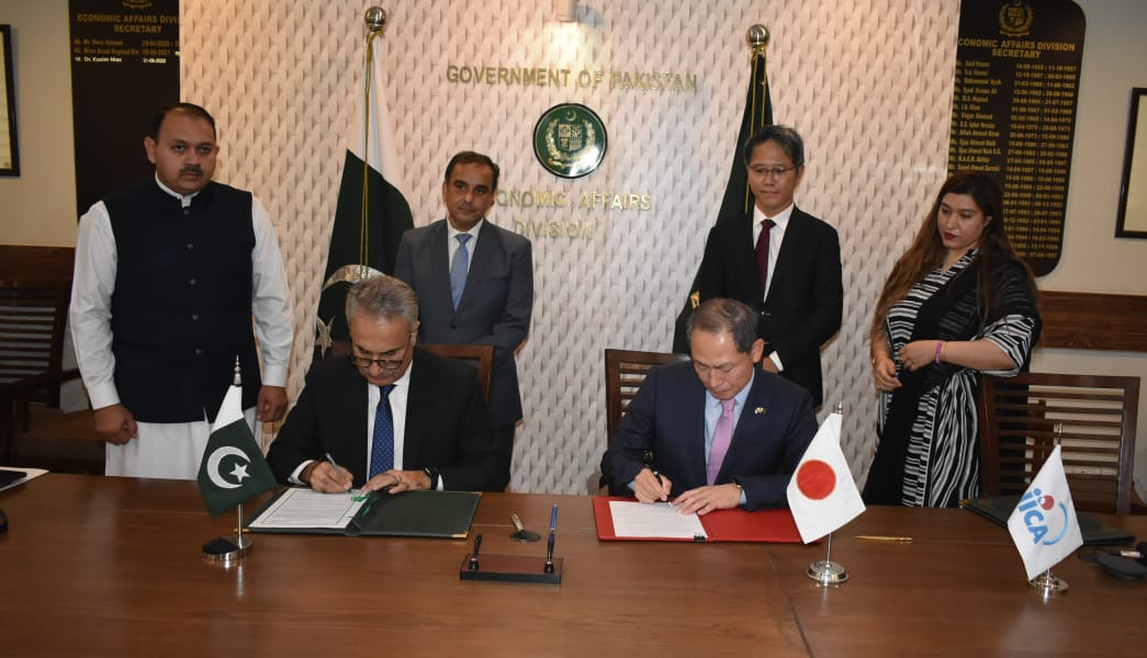 A formal signing ceremony was held in Islamabad, where Notes Verbale were signed and exchanged between H.E. Mr. AKAMATSU Shuichi, the Ambassador of Japan to Pakistan, and Dr. Kazim Niaz, Secretary, Ministry of Economic Affairs, Government of Pakistan. Additionally, a Grant Agreement outlining the implementation details of the project for fiscal year 2025 was signed between Mr. Naoaki MIYATA, Chief Representative of the Japan International Cooperation Agency (JICA) in Pakistan, and Mr. Miran Mohiyuddin Soomro, Joint Secretary, Ministry of Economic Affaris.