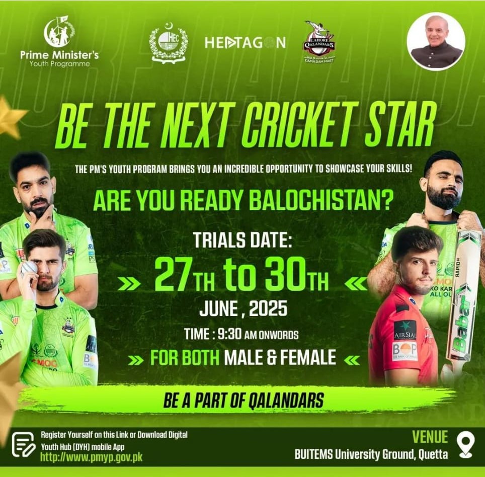 Islamabad, June 24, 2025: The Lahore Qalandars in partnership with Prime Minister’s Youth Programme (PMYP) and the HEC has launched the PM’s Cricket Talent Hunt Programme, what is being described as the biggest cricket talent hunt in Pakistan’s history.