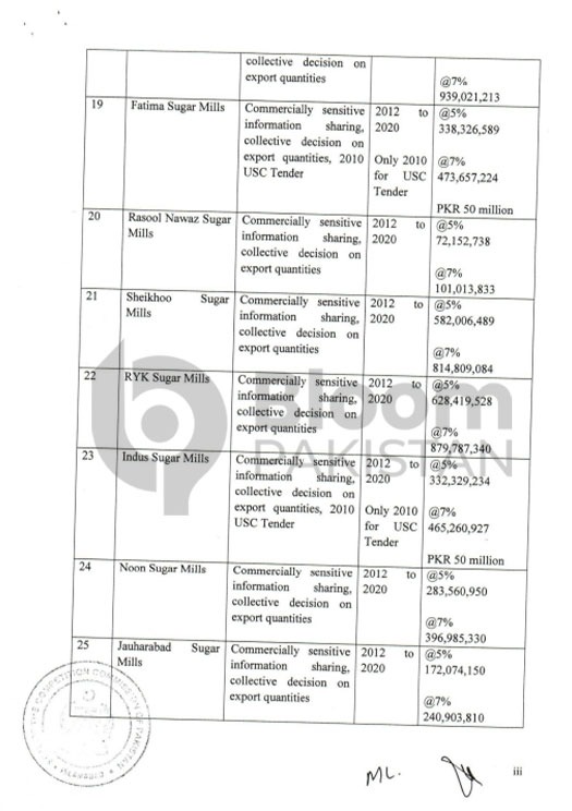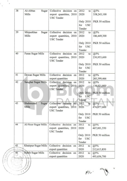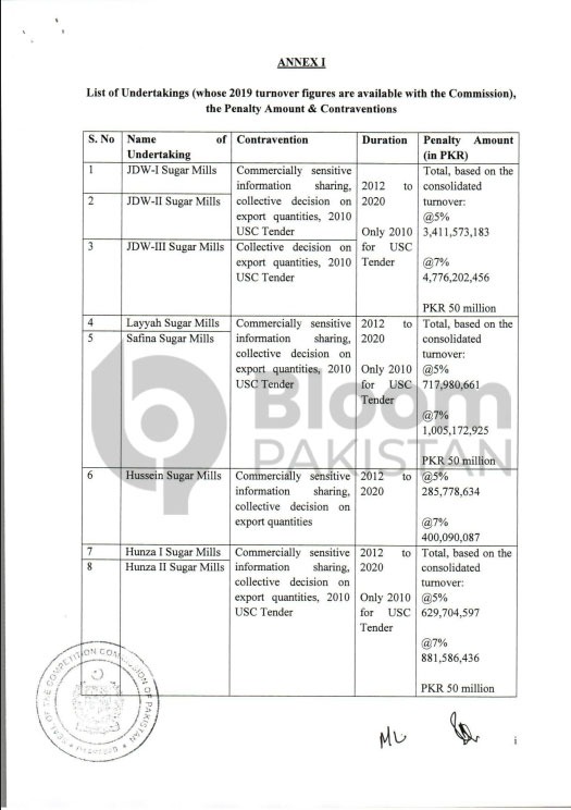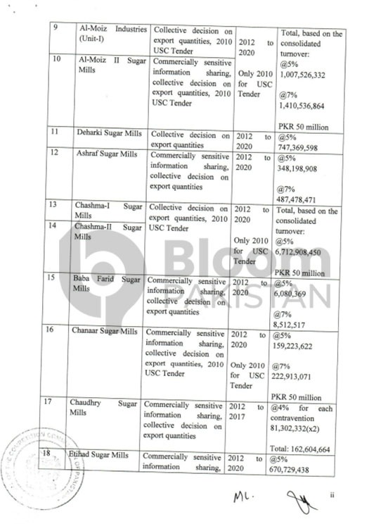 The case involves multiple members of the Pakistan Sugar Mills Association (PSMA), who were penalized in 2021. The list of sugar mills fined includes major industry players accused of manipulating sugar prices.