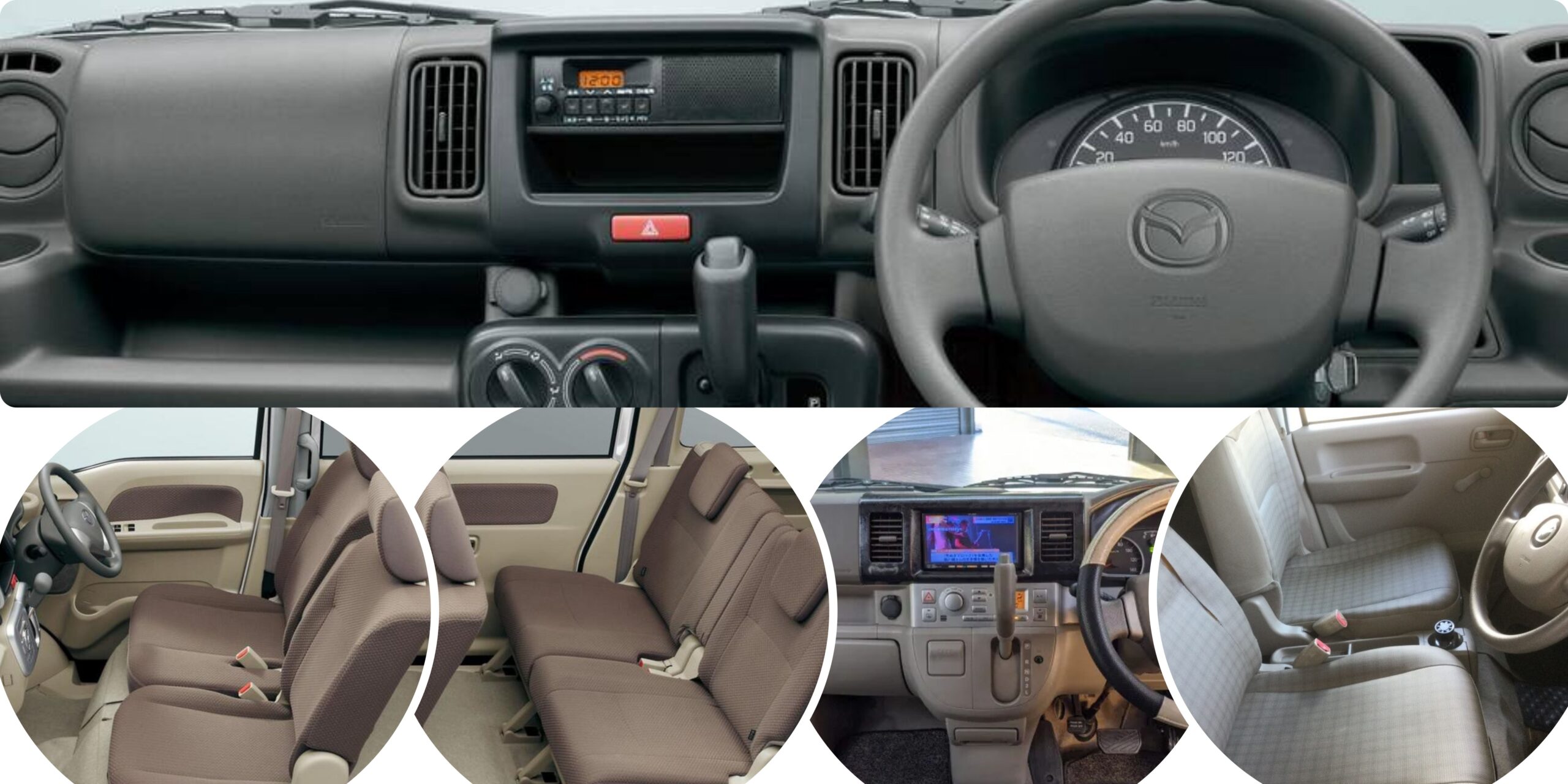 The interior of the Mazda Scrum Van 2025 focuses on comfort and practicality with features such as:
