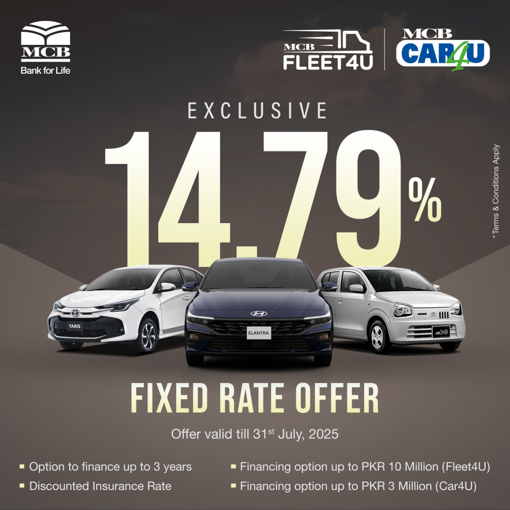 Under this deal, MCB’s Fleet4U plan allows customers to borrow up to PKR 10 million, while the Car4U plan offers financing up to PKR 3 million. These options make it possible for people to buy small cars or even bigger family cars as per their needs.