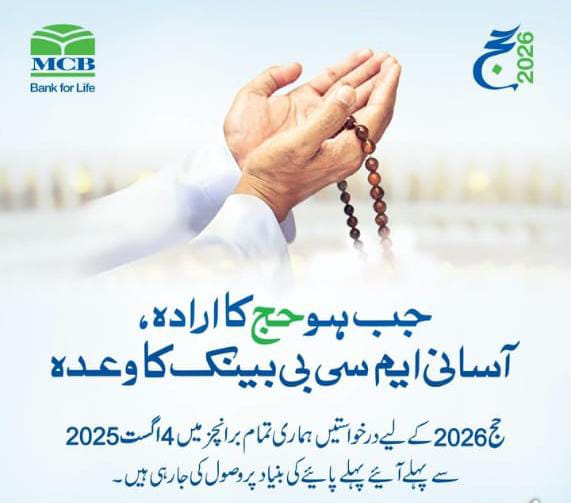 Islamabad, Aug 2, 2025: MCB Bank has officially opened the gates for pilgrims planning to perform Hajj in 2026. Starting August 4, 2025, applications for Hajj 2026 can be submitted at any MCB Bank branch across Pakistan. With limited slots available, the opportunity is based strictly on a first come, first served basis.
