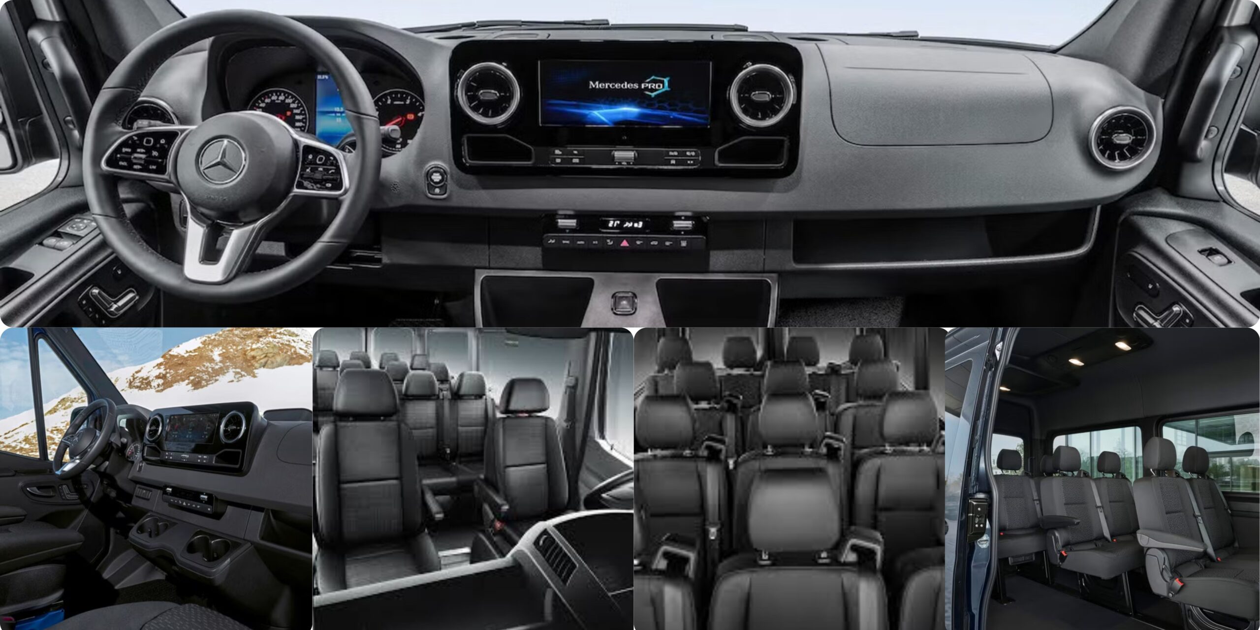 The Mercedes-Benz Sprinter competes with models like the Toyota HiAce and Hyundai H350. However, it stands out with its premium features, refined interior, and superior driving experience.