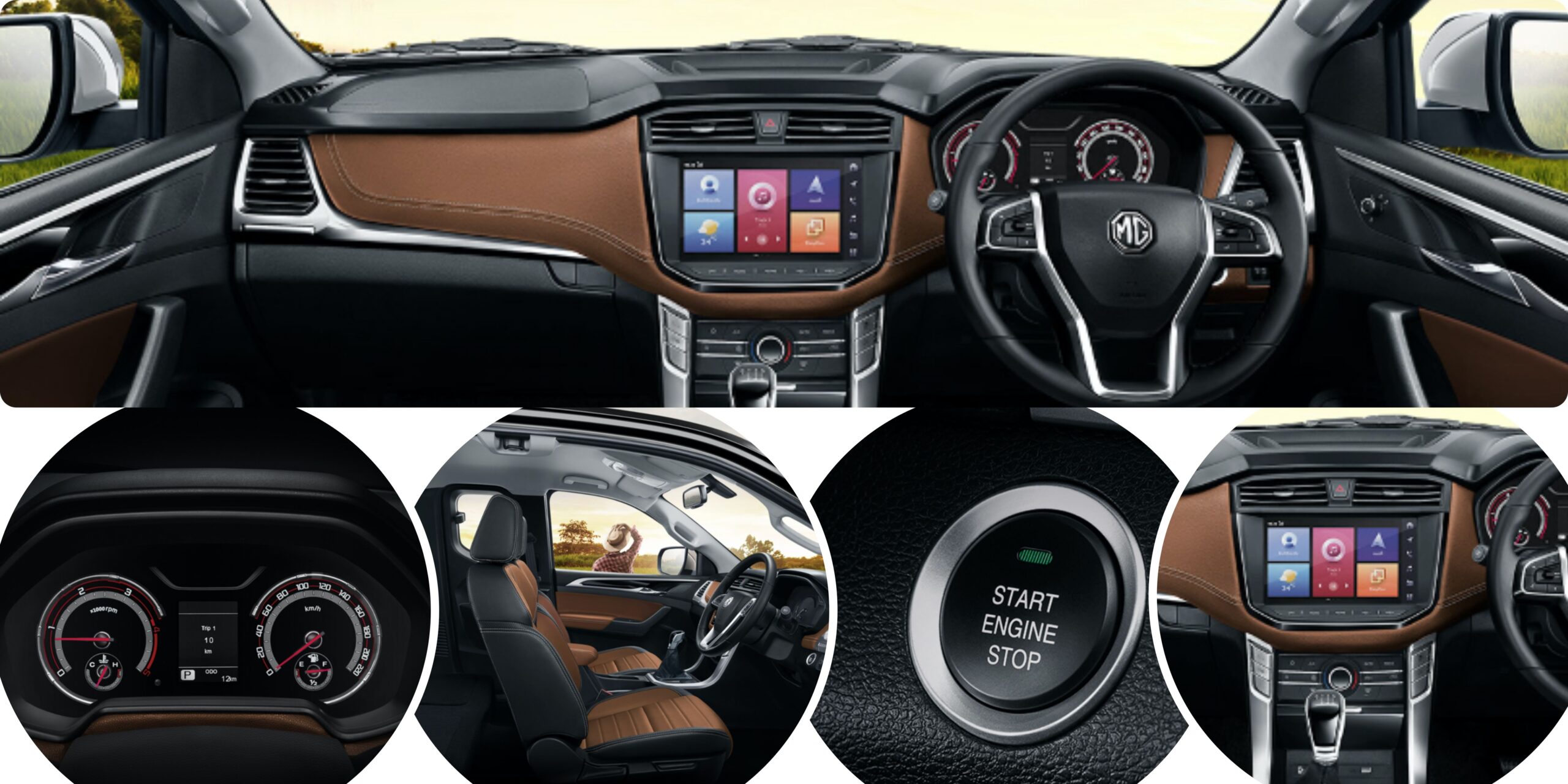 The interior of the MG Extender combines luxury and practicality, making long drives and off-road adventures more enjoyable.