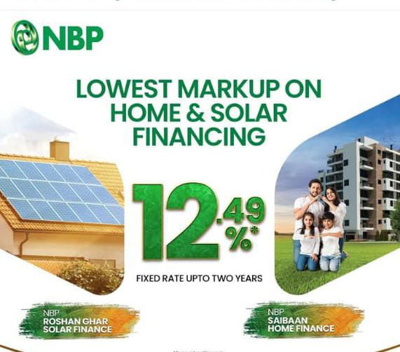 Islamabad, Aug 11, 2025: The National Bank of Pakistan (NBP) has launched an exclusive limited-time offer, providing the lowest markup on home and solar financing in the market — just 12.49% fixed rate for up to two years.