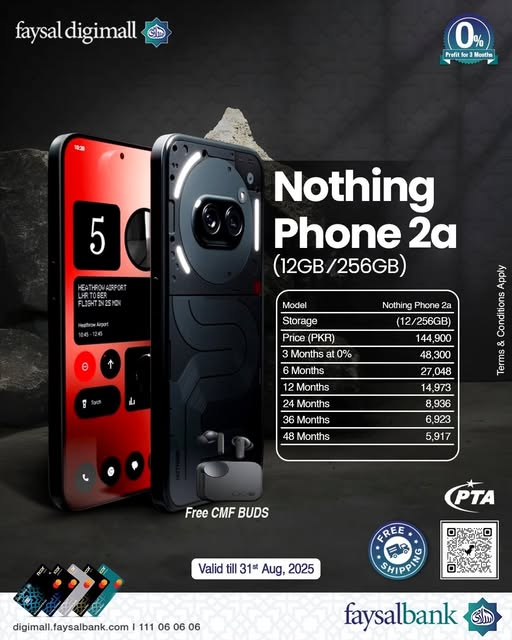 The promotion is valid until 31st August 2025, giving customers plenty of time to take advantage of this offer. With long-term installment plans and exclusive freebies, Faysal Digimall ensures owning the Nothing Phone 2a is easier than ever.
