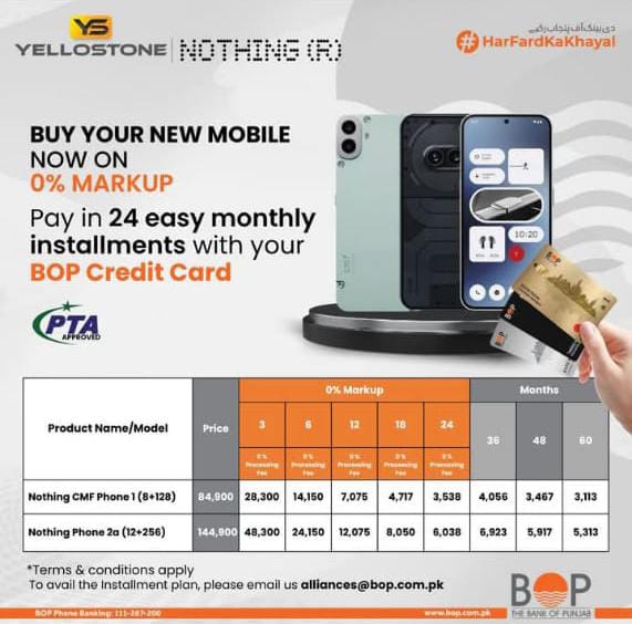 Islamabad, July 30, 2025: The Bank of Punjab (BOP) has launched an exciting new offer for tech enthusiasts across Pakistan. Customers can now buy the innovative Nothing Phone series on 0% markup and spread payments over 24 easy monthly installments using their BOP Credit Card. This unbeatable offer is aimed at making premium smartphones affordable and accessible for everyone.