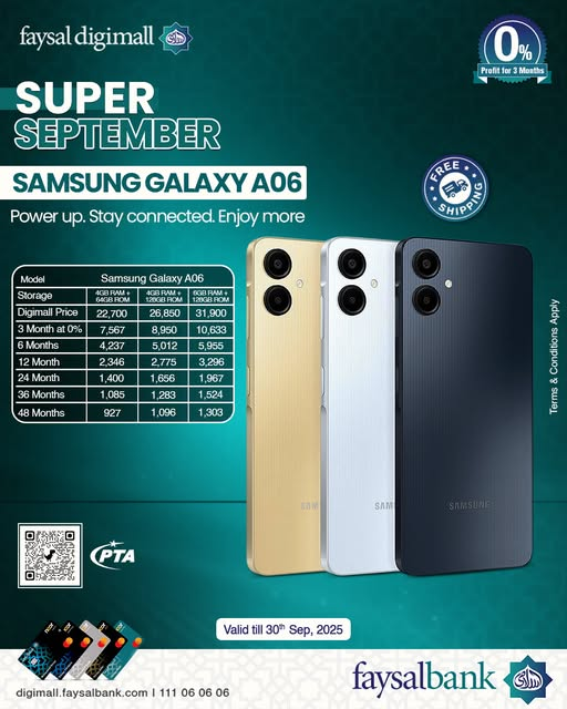 Don’t wait! Grab your Samsung Galaxy A06 with easy installment options today through Faysal Digimall and enjoy a smarter way to shop. Your dream phone is now within reach — made easy by Faysal Bank.