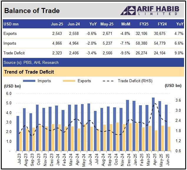 Islamabad, July 2, 2025: Pakistan trade deficit is increased by 9 percent from $24.104 billion in FY24 to reach $26.27 billion during the concluding financial year i.e. FY25, as per figures released by the Pakistan Bureau of Statistics.