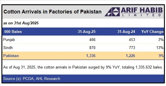Pakistan’s cotton arrivals have risen by around 9 percent as on August 31, 2025.