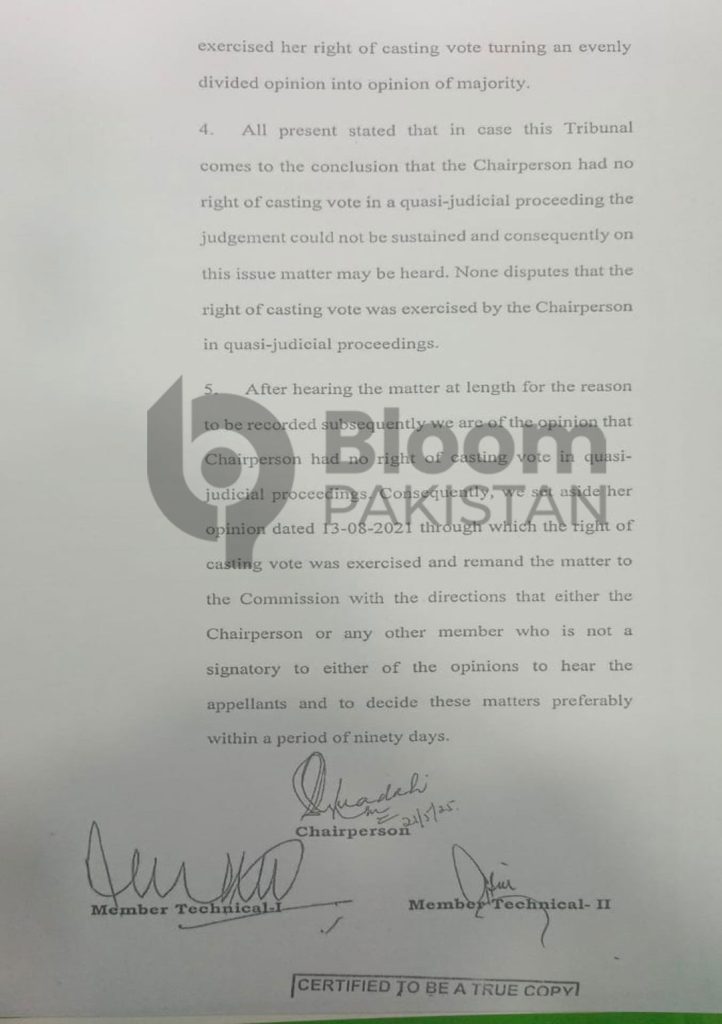 Two members, including the Chairperson Ms Rahat Kaunain Hassan and Member Mujatba Lodhi, supported the imposition of the penalty, while the remaining two Members including Ms Bushra Naz Malik and Shaista Bano issued a dissenting opinion.