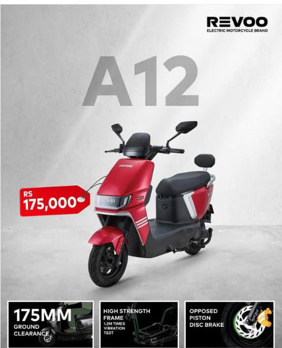 Experience the Revoo A12 Electric Bike – the ultimate electric ride now available in Pakistan starting at just PKR 175,000. Redefine your journey with unmatched style, efficiency, and cutting-edge technology.