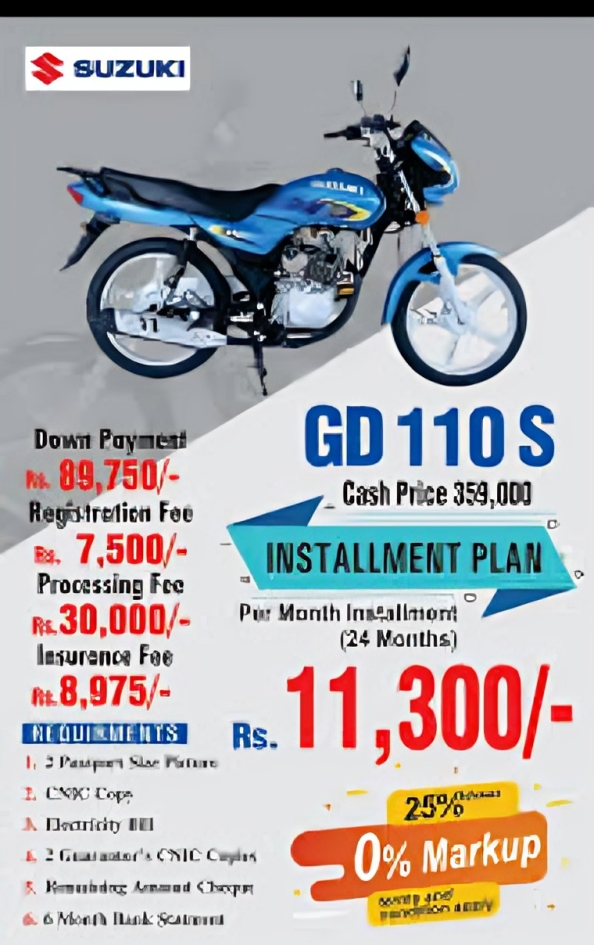 Pak Suzuki has officially launched its highly affordable and flexible 0% markup motorcycle installment plan in June 2025, available exclusively at its company-owned outlets. The scheme comes with no hidden charges, transparent deals, and fast approvals, making motorcycle ownership easier than ever.