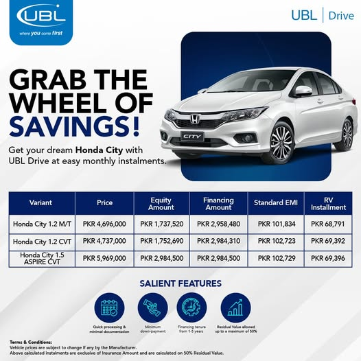 Islamabad, July 31, 2025: Looking to buy a brand-new car without putting too much pressure on your wallet? UBL Drive has made it incredibly simple and affordable to own your dream Honda City with flexible and easy monthly installments.