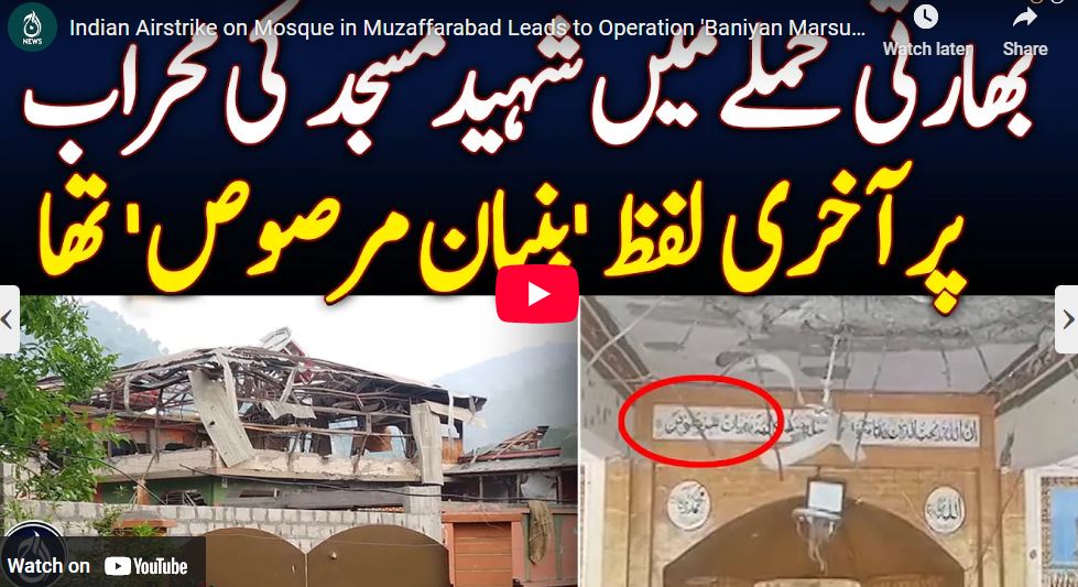 According to journalist Imtiaz Awan of Aaj News, the Indian air raid on the night of May 6–7 caused serious destruction to a local mosque.
