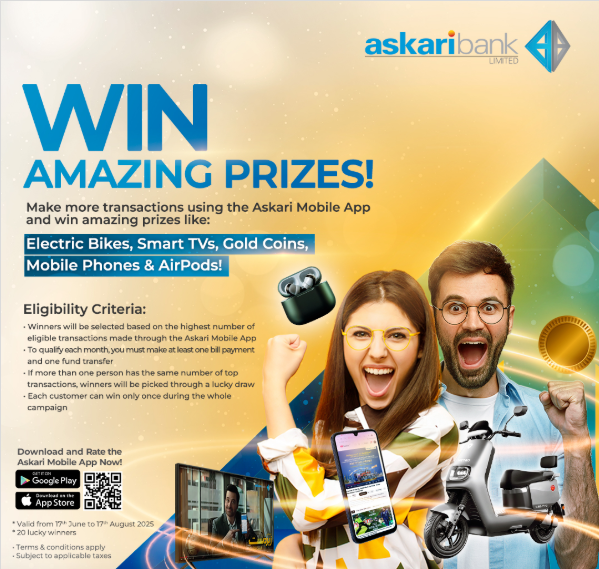 To enter the reward scheme, users must carry out transactions using the Askari Mobile App. To qualify for the monthly giveaway, participants need to complete at least one utility bill payment and one money transfer within a calendar month. Those with the highest number of eligible transactions will win prizes.