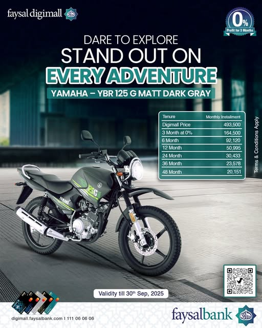This promotion is valid till 30th September 2025, giving customers ample time to take advantage of the offer. Faysal Digimall has made it easier than ever for Pakistanis to own a high-quality Yamaha motorcycle without straining their budget.